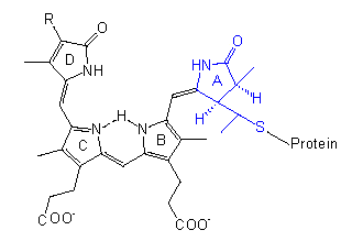 Die chromophore Gruppe ist ein lineares Tetrapyrrol, dessen Konformation und Absorptionsspektrum sich in der PR-Form deutlich von der in PFR unterscheidet. Eine ähnliche Gruppe mit vergleichbaren Konformationsänderungen liegt in den Bilirubinen der Rotalgen vor, dort steht lediglich anstelle der Vinylgruppe am Ring D eine Äthylgruppe.